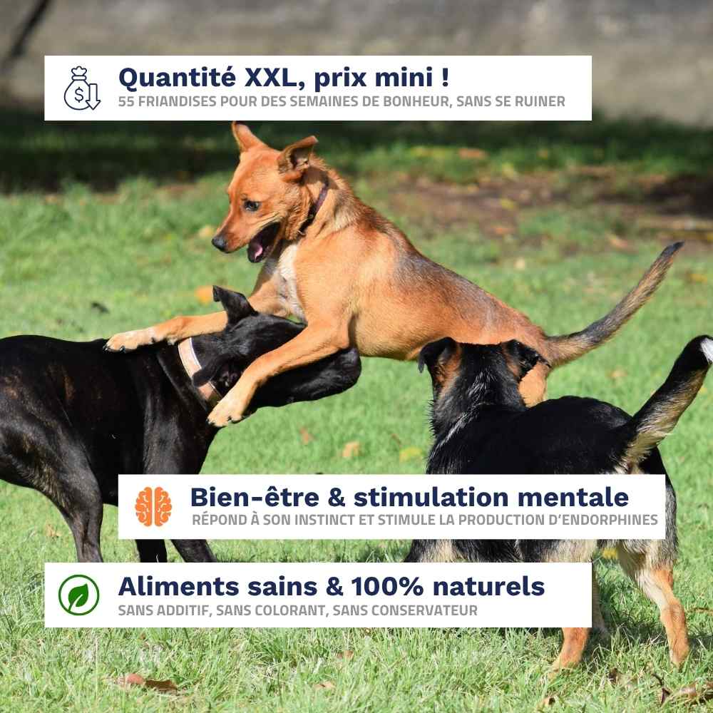 Friandises et mastication 100% naturels 🦴 • Répond au plaisir et à la santé des chiens 🐶 • Marque française 🇫🇷 • 97% de clients satisfaites 😍 • Livraison rapide 🚚 •